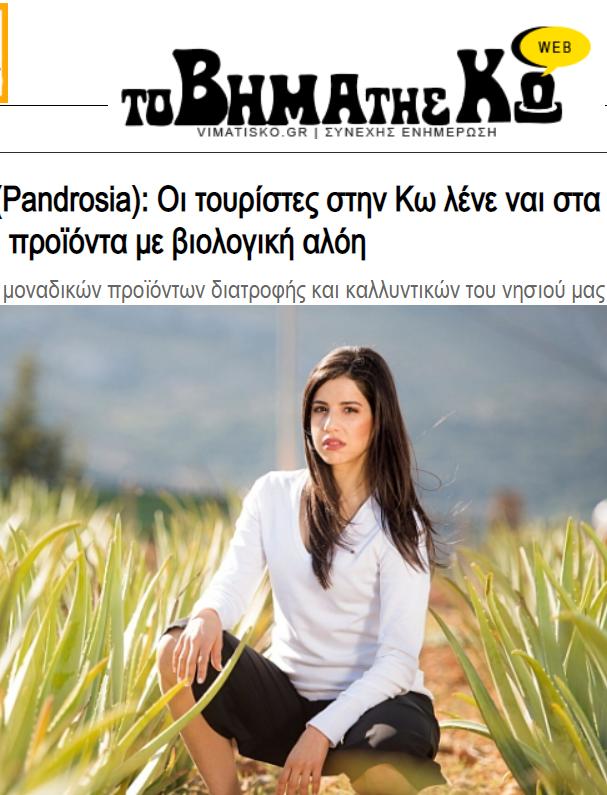 Τα τοπικά προϊόντα έχουν ζήτηση και βρίσκονται ανάμεσα στις πρώτες προτιμήσεις των τουριστών για δώρα για φίλους. Σε ανοδική τροχιά βρίσκονται και τα τοπικά προιόντα διατροφής και καλλυντικά που παρασκευάζονται από 100% βιολογική αλόη βέρα που καλλιεργείται και συλλέγεται στην Κω. Ο λόγος για τα προιόντα pandrosia της οικογένειας Παύλου Δρόσου που έχουν μπει δυναμικά στον πανελλαδικό χάρτη προιόντων υψηλής διατροφικής αξίας και φαρμακευτικών καλλυντικών. Μία προσπάθεια από την Κω που διαφημίζει την ιπποκρατική πλευρά του νησιού σε όλη την χώρα.