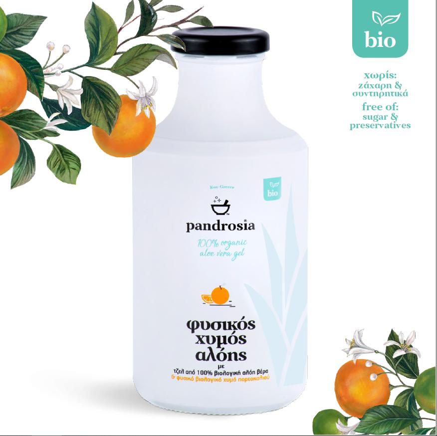 Ο 100% φυσικός βιολογικός χυμός αλόης pandrosia προέρχεται από το εσωτερικό του φύλλου της αλόης και περιέχει περισσότερα από 75 δραστικά συστατικά, μεταξύ των οποίων οι βιταμίνες C και E, βήτα καροτένιο, βιταμίνες του συμπλέγματος Β (φυλικό οξύ, βιταμίνη Β12), μέταλλα όπως το μαγνήσιο, το σελήνιο, το ασβέστιο, το χρώμιο και ο ψευδάργυρος. Επίσης περιέχει 7 από τα 8 βασικά αμινοξέα, είναι πλούσιος σε πολυφαινόλες και φυτικές στερόλες. Ο χυμός pandrosia, λοιπόν, συνοδεύεται από πληθώρα ευεργετικών ιδιοτήτων: